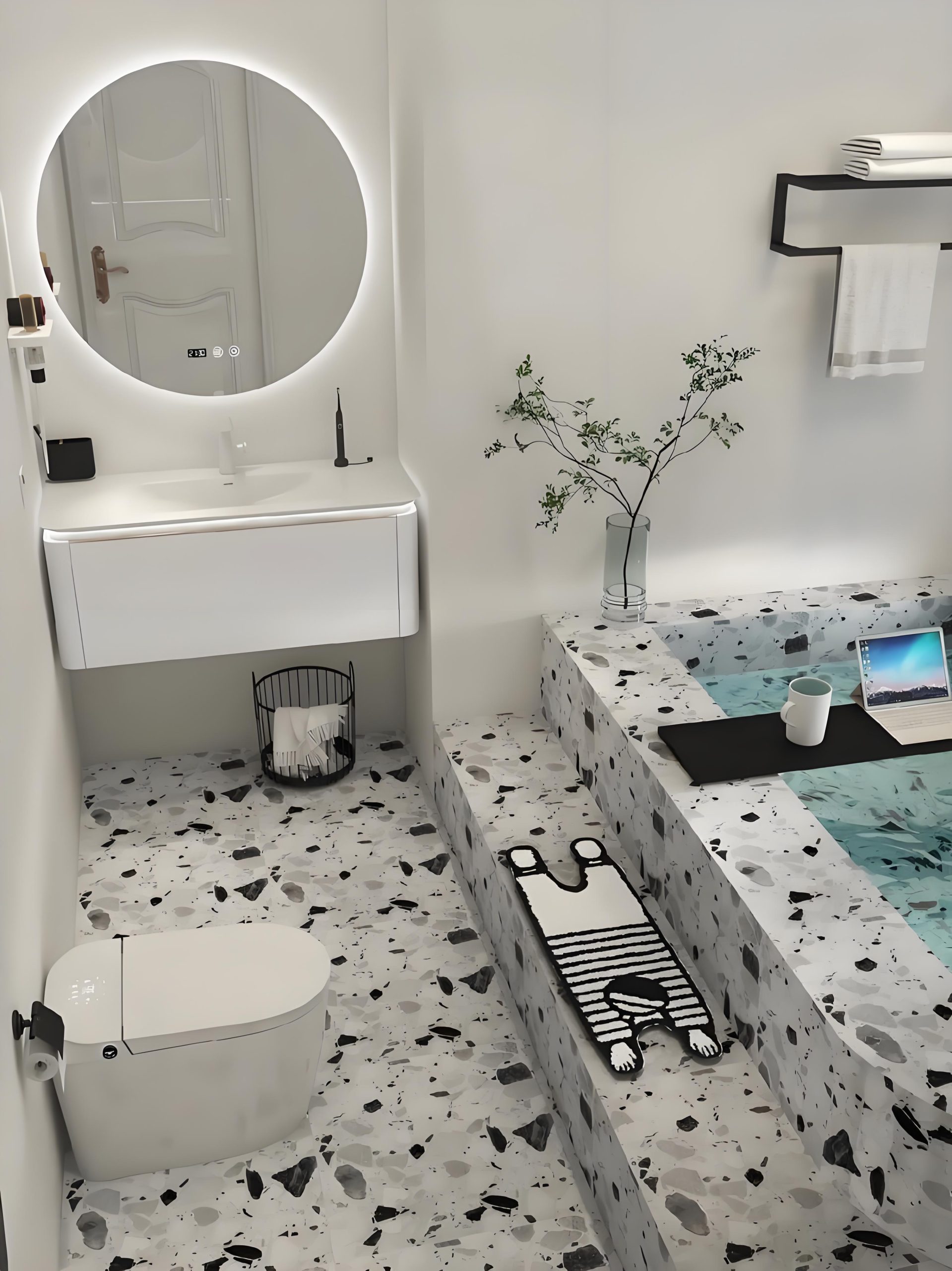 - ?衛(wèi)浴地面/墻面?:防滑防水,搭配暖色石粒提升空間質(zhì)感?。