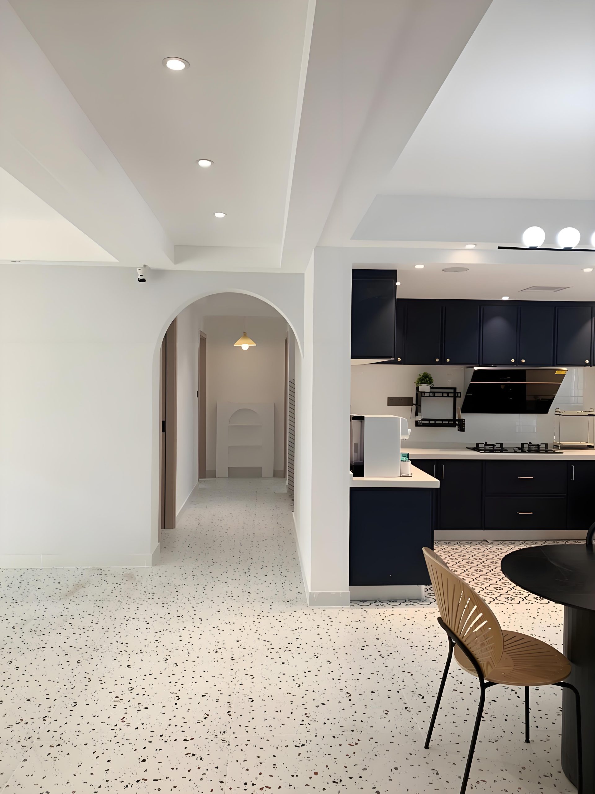 - ?亮點(diǎn)?:水磨石與木地板無(wú)縫拼接,分區(qū)不割裂。